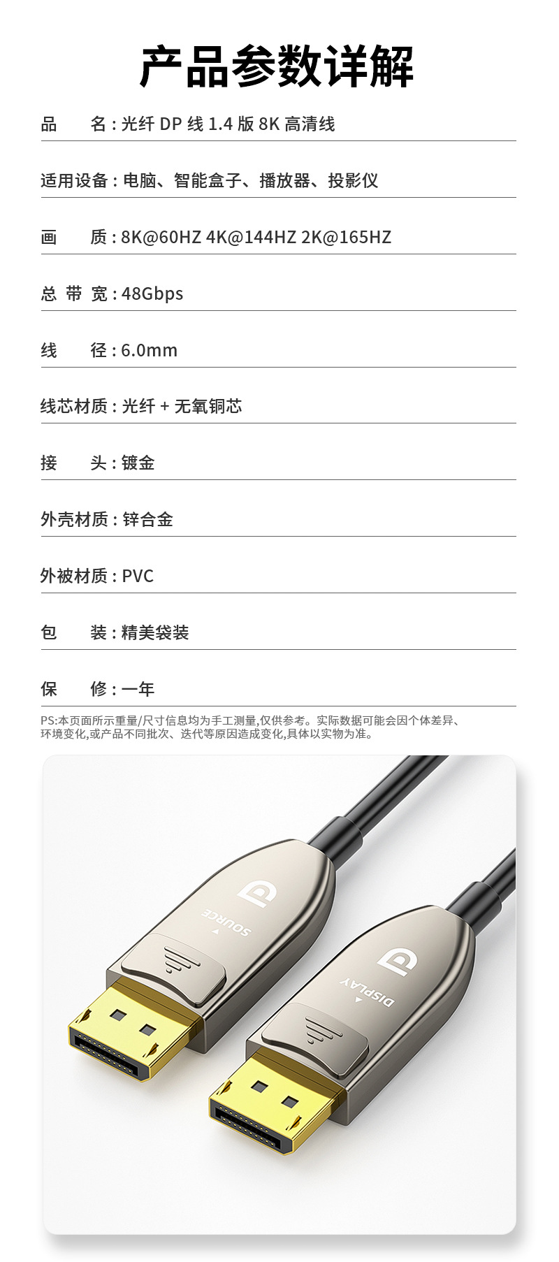 光纤DP线1.4版高清8k60Hz视频连接线