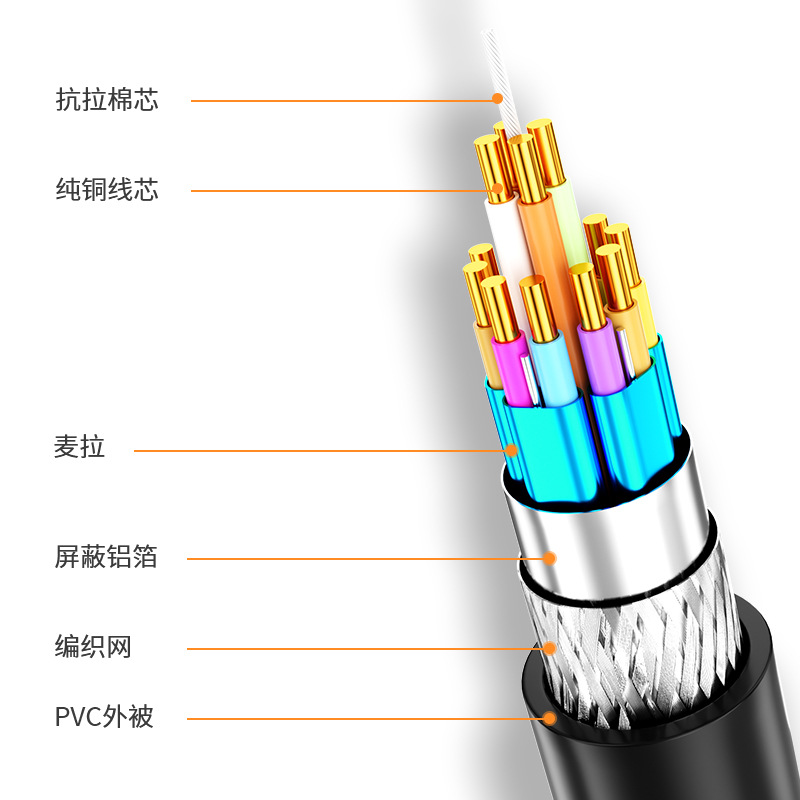 2.加粗线芯,多层屏蔽,稳定抗干扰