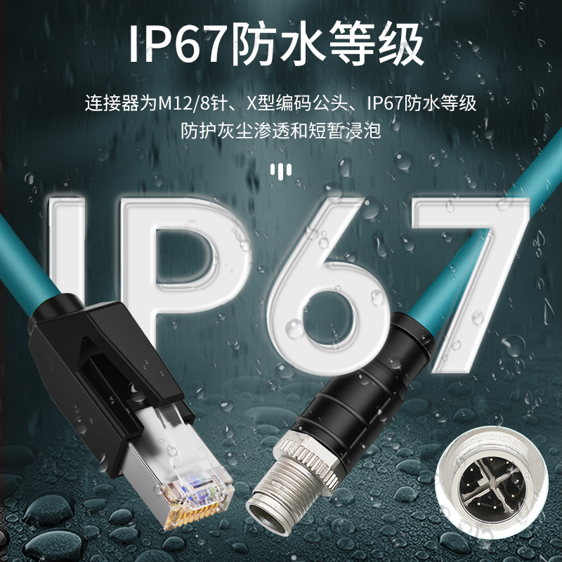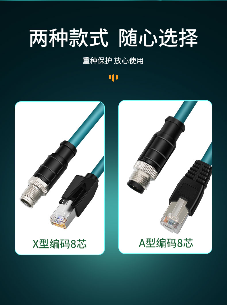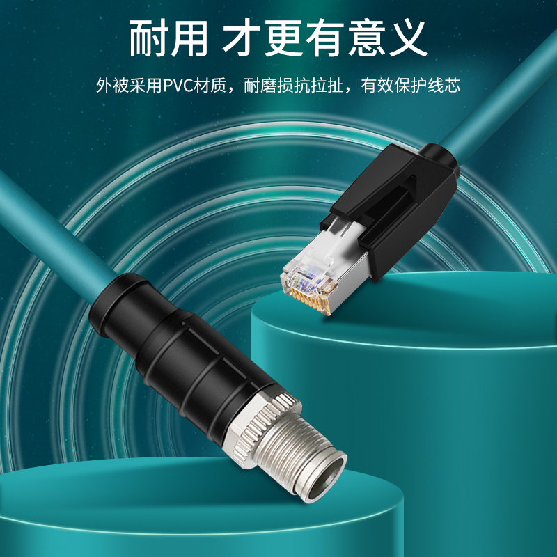 产品名称:工业8针X型M12转RJ45拖链线,也可以选择A型