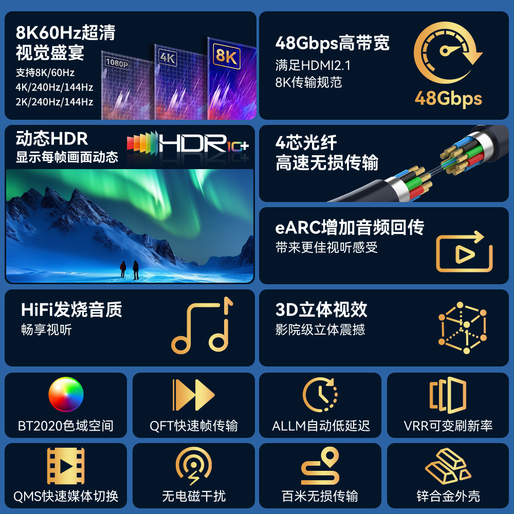 湖南铠装HDMI线2.1版8k60Hz视频连接线