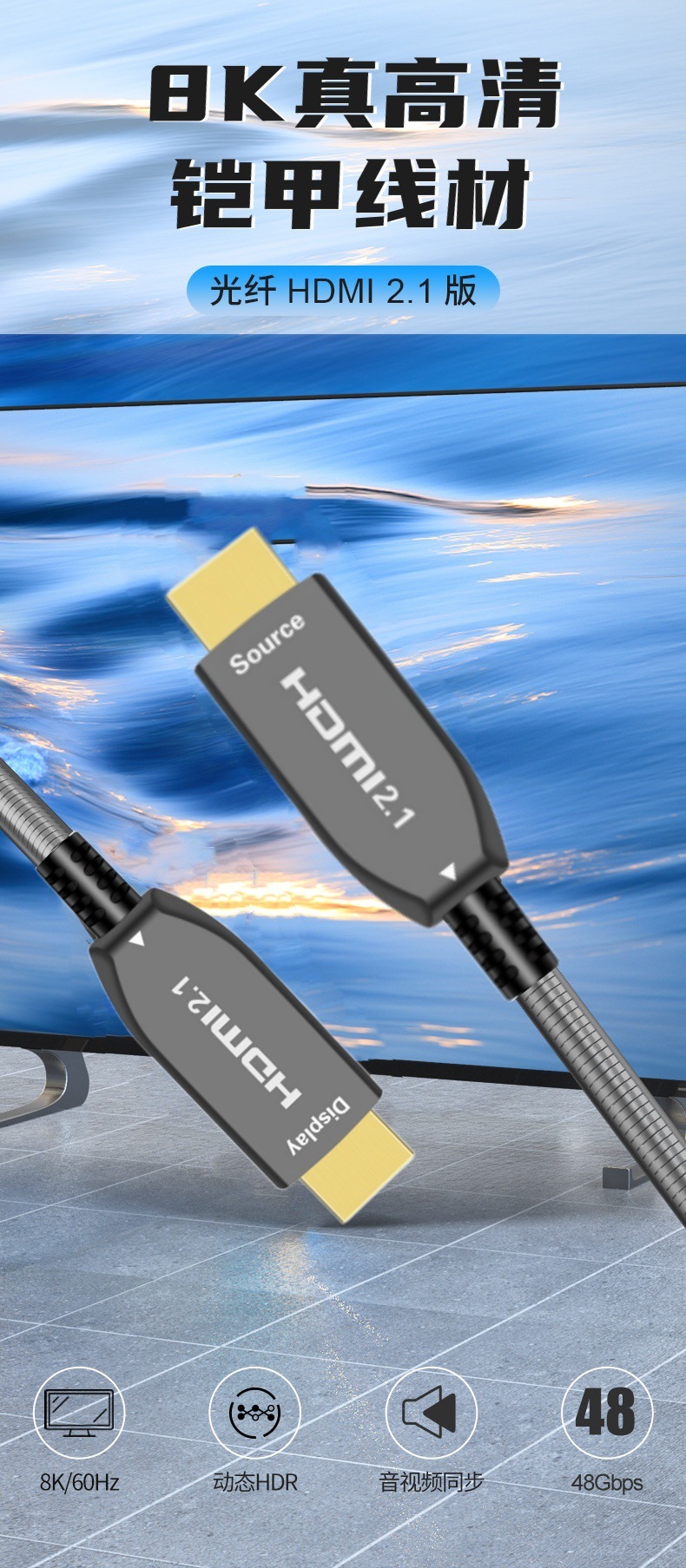产品名称:铠装HDMI线2.1版8k60Hz视频连接线