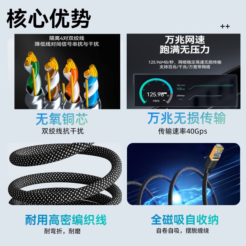 产品名称:磁吸八类cat8屏蔽网线